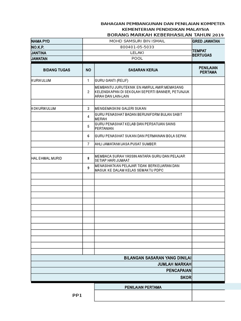 Nak tambah huhu tak berani nak letak lagi dalam keadaan yang ketidakpastian ini. CONTOH PENGIRAAN SKOR JULAT KEBERHASILAN PBPPP GURU PdP Bil Maklumat dalam Borang Markah Keberhasilan Maklumat dalam dokumen rujukan Penilaian Akhir Tahun Aspek Deskripsi Penetapan sasaran awal Pencapaian Pertengahan Sasaran Akhir Pencapaian Sebenar 1 PdP Peningkatan pemahaman dan kemahiran murid Sasaran 30. Scribd is the worlds largest social reading and publishing site.
